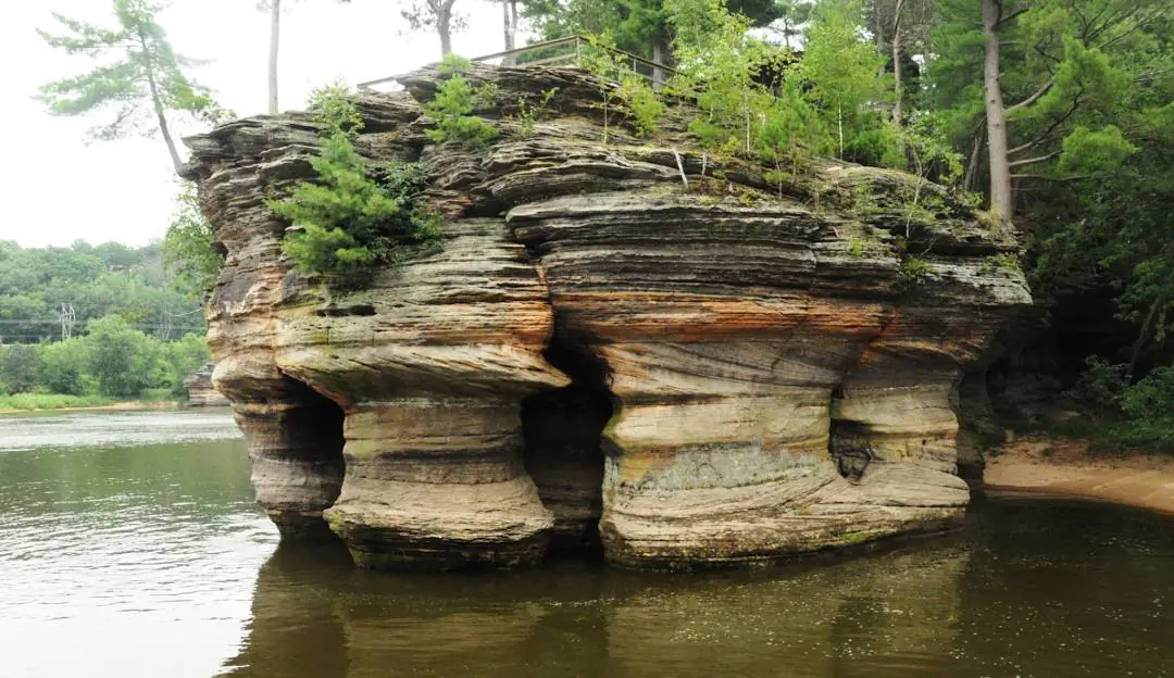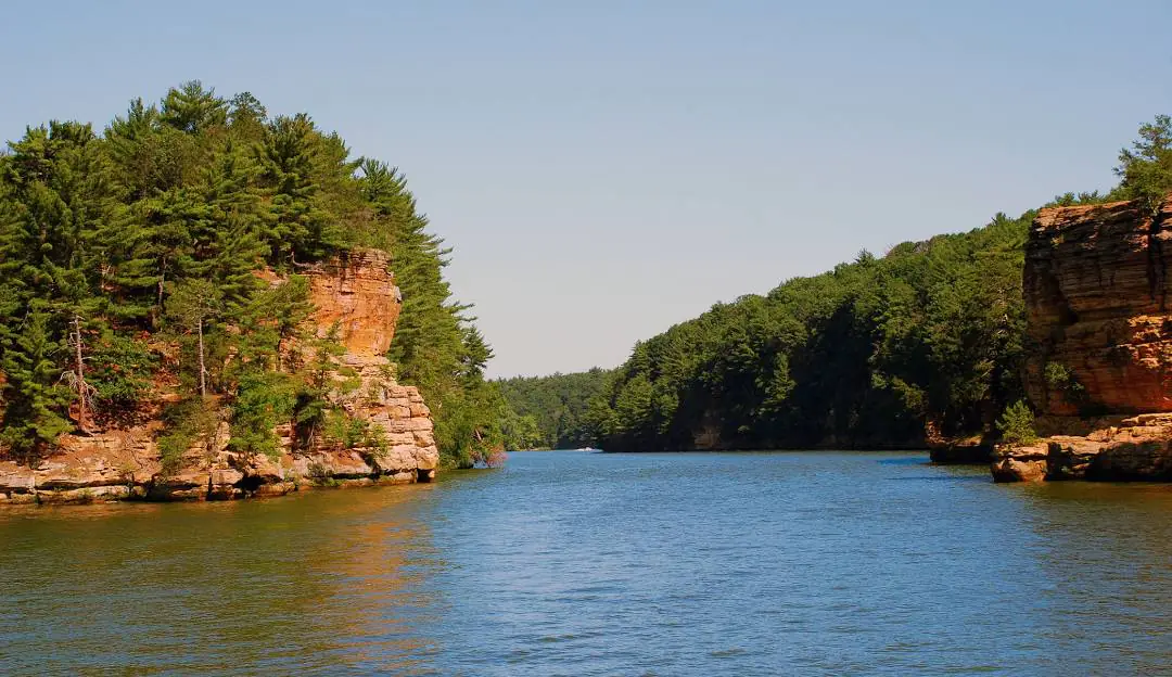 Wisconsin Dells, a city in southern Wisconsin, lies on the Wisconsin River in a region of glacier-carved sandstone formations. Its numerous theme parks and entertainment centers include Noah’s Ark Water Park, and Mt. Olympus Water and Theme Park. Mirror Lake State Park, a forested reserve surrounding the namesake lake, is known for nature trails and camping